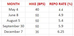 Signalling a further rise in lending and deposit rates, the Monetary Policy Committee (MPC) of the Reserve Bank of India on Wednesday (December 7) hiked the key policy rate, the repo rate or the rate at which the RBI lends funds to banks, by 35 basis points to 6.25 per cent in a bid to rein in retail inflation.