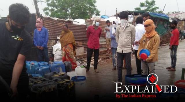 At a slum in Delhi after the Delhi Jal Board rushed a water tanker following complaints that those living there had no water for their daily needs. Express Photo/Shivam Patel