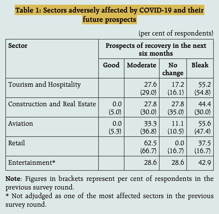 The table names the sectors with the bleakest prospects in the first half of this year.