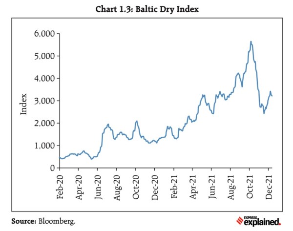 Another key index is the Baltic Dry Index, which is a measure of shipping charges for dry bulk commodities. This index crossed its highest mark in more than a decade in October 2021, but it recorded a sudden drop after that. (see Chart 2).