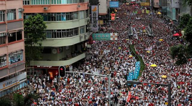Hundreds of thousands of protesters dressed in white marched in the streets of Hong Kong Sunday in the biggest protest since the Umbrella Revolution of September-December 2014. Police estimated the number of marchers at 240,000; organisers, said a million people protested. Hong Kong, which at roughly 1,100 sq km is smaller in size than Delhi, is home to an estimated 7.4 million people.