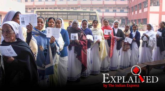 Ranchi: Nuns and sisters from a church stand in queue displaying their voting card as they wait to cast their votes during the third phase of Jharkhand Assembly elections (File)