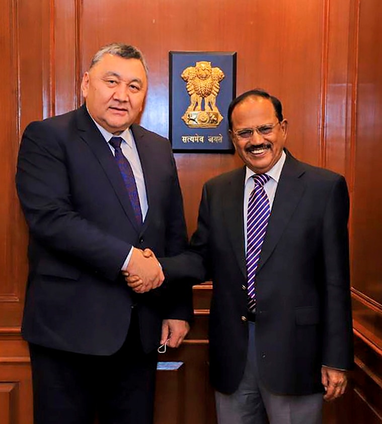 NSA Ajit Doval with Secretary of Security Council of Kyrgyz Republic Lieutenant General Marat Imankulov during the first India-Kyrgyzstan Strategic Dialogue between National Security Council Secretariats. (PTI)