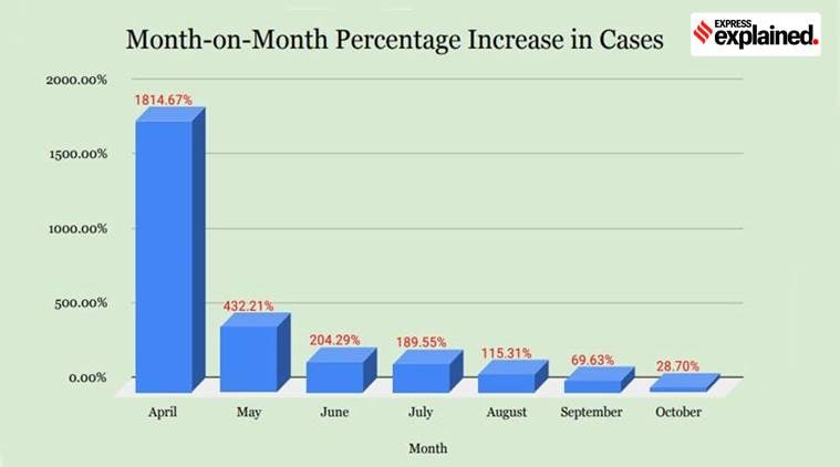 There was only a 28 per cent rise in the total number of cases in the month of October, the lowest so far.