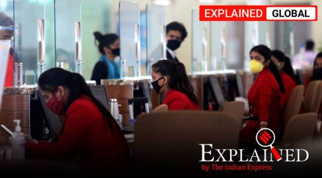Facilities at the Mumbai International Airport have been modified to ensure minimum contact with passengers. (Express Photo: Ganesh Shirsekar)
