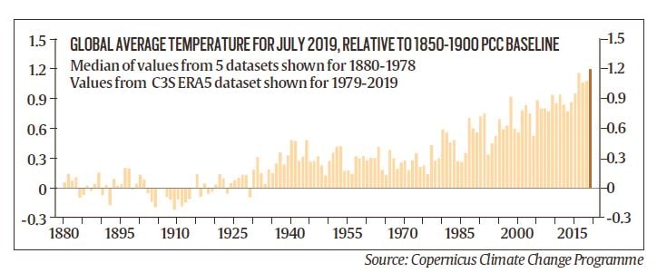 July 2019 was close to 1.2°C above the pre-industrial level.