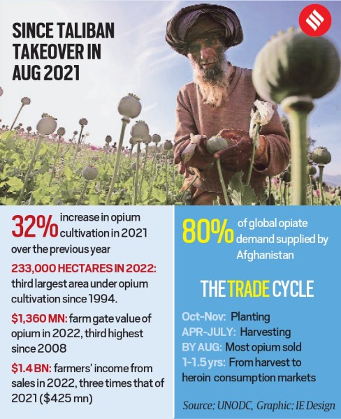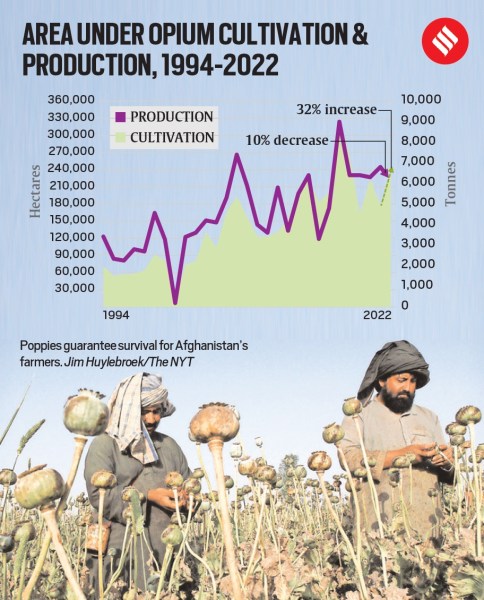 A new report by the United Nations Office on Drugs and Crime (UNODC) released earlier this week says the land under poppy cultivation in Afghanistan in 2021 (October and November are the sowing season) increased by 32 per cent over the previous year. If the harvest (in spring) had not been affected by a drought that hit many parts of Afghanistan, there would have been a bumper crop.