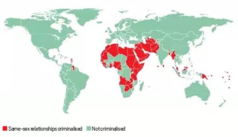 Until the Supreme Court read down IPC Section 377, India was one of 72 countries that treated same-sex relationships as a crime. It is now set to join 124 other countries where such relationships are legal. This count is by the International Lesbian, Gay, Bisexual, Trans and Intersex Association (ILGA), a federation of 1,200 member organisations from 132 countries. A 2017 report by ILGA says that the death penalty is in force in 8 countries (4 at national level, 2 in certain provinces, and 2 where non-state actors carry out the death sentence). Another 5 countries —including Pakistan and Afghanistan — have provisions for the death penalty but are not known to actually implement it, according to ILGA.