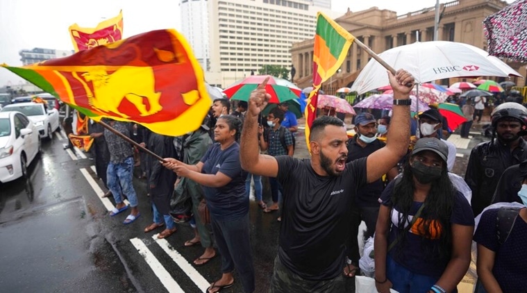 Sri Lankans demanding president Gotabaya Rajapaksa resign over the debt-ridden country’s worst economic crisis protest outside the president’s office in Colombo, Sri Lanka. (AP Photo)