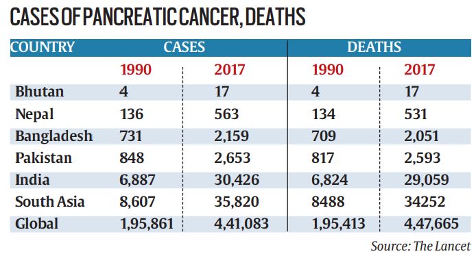 The Global Burden of Disease Study 2017 for pancreatic cancer, published in The Lancet on Monday, found that this form of cancer, once rare, is now a growing cause of cancer mortality worldwide. From 1,96,000 incidences in 1990, these rose to 4,41,000 in 2017.