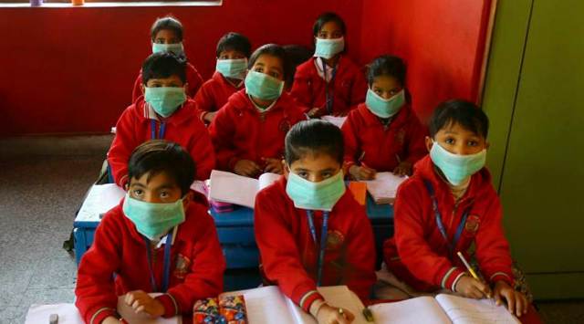 At a classroom in Ajmer Wednesday. Among states, Rajasthan has had the highest number of swine flu cases this year. (PTI Photo)