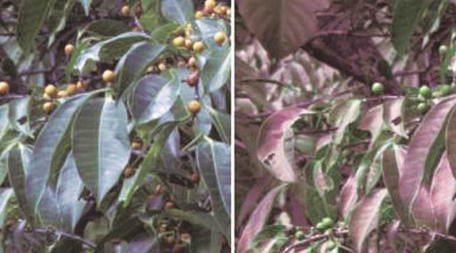 In the combined image above, the photograph on the left shows leaves in the colours that a human observer would see them. The photograph on the right, taken by a special camera, shows the same leaves in the colours that a bird would see them.