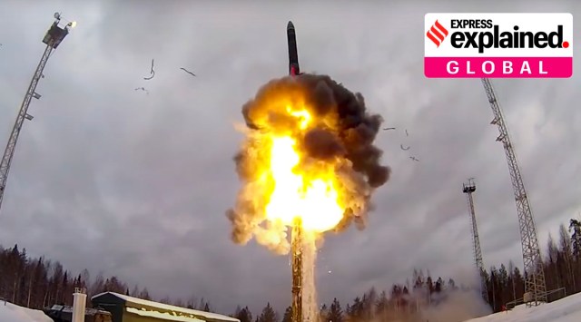 This photo taken from video provided by the Russian Defense Ministry Press Service on Saturday, Feb. 19, 2022, shows a Yars intercontinental ballistic missile being launched from an air field during military drills. The Russian military on Friday announced massive drills of its strategic nuclear forces. (AP/File)Vladimir Putin put his nuclear forces on increased alert on Sunday in an unprecedented escalation of tension with the West since the collapse of the Soviet Union over Russia’s massive conventional assault of Ukraine, which entered its fourth day with fighting in the streets of the country’s second-largest city.