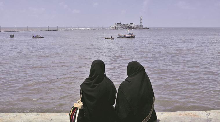Women look out to the Haji Ali dargah in the sea off Mumbai on Tuesday, the day the Supreme Court struck down instant triple talaq. (Source: Express Photo/Nirmal Harindran)