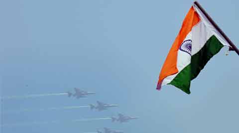 IAF’s Jaguar planes flying past during the 67th Republic Day parade at Rajpath in New Delhi on Tuesday. (Source: PTI)