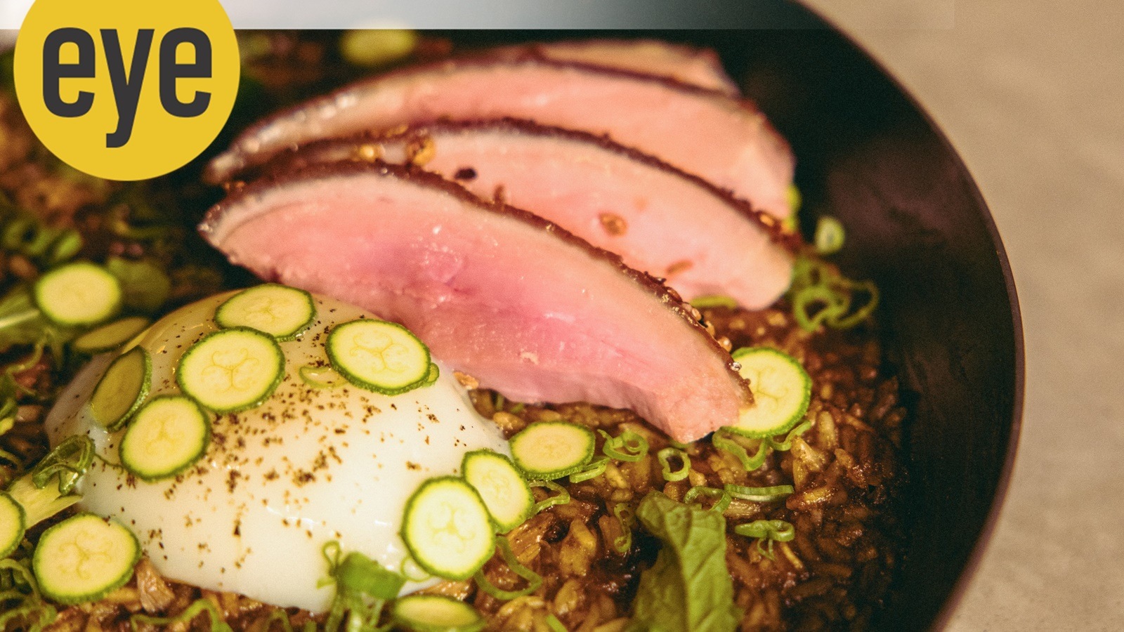 Hamachi: What The Duck (with dry aged duck, Indrayani rice) and green garlic at Papa's Mumbai