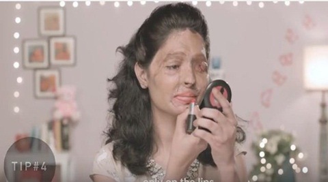 An acid-attack victim Reshma smiles, pouts and gives you the step-by-step makeup tutorial to get the perfect red lips. It’s like any other beauty tutorial until her smile fades out after a pause. And then gives her most important tip. She says – You’ll find red lipstick in market just like concentrated acid’ and requests everyone watching the video to help her #EndAcidSale.