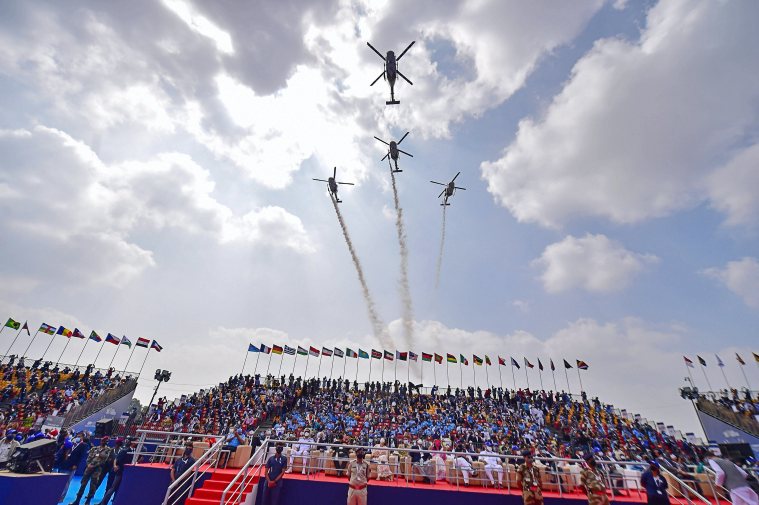 There was a scintillating display of ‘Dhanush’ formation by the Light Combat Helicopters and ‘Netra’ formation showcasing the Defence Research Development Organisation’s flying display of Airborne Early Warning and Control System (AEW&C).