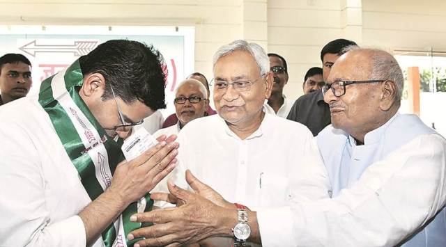 INDICATING THAT the JD(U) would continue its alliance with the BJP for the 2019 Lok Sabha elections, Bihar Chief Minister and JD(U) national president Nitish Kumar told his party’s state executive on Sunday that talks on seat-sharing had been held, and the share of seats would be revealed at the “right” time. “Seat-sharing par baat ho gayi hai. Aap log kaam par jut jaiye (Seat sharing talks are done. You get to work),” Nitish is learnt to have said at the party meeting. Just before Nitish made this announcement, poll strategist Prashant Kishor joined the JD(U). Welcoming him into the party, Nitish said, “It is a matter of personal happiness for me”. Sources said Kishor would be given a key role, with an important party designation, soon. “With Prashant Kishor having met BJP president Amit Shah recently, there has been speculation about him playing a key role in seat-sharing talks,” said a JD(U) source. After the meeting, Kishor is learnt to have shared the dining table with Nitish and top party leaders. A resident of Buxar, Kishor was Prime Minister Narendra Modi’s main poll strategist for the 2014 Lok Sabha polls, and was also credited with the victory of the Grand Alliance in the 2015 Bihar Assembly polls. He was made advisor to the chief minister for a brief period. READ | Prashant Kishor joins JD (U) in Nitish Kumar’s presence Earlier, Kishor hinted at the move, tweeting that he was “excited to start my new journey from Bihar”. While Kishor, till recently, insisted that he would not join any party, Nitish and at least two top JD(U) leaders are known to have been in constant touch with him, seeking to get him as the party’s poll strategist for the 2019 Lok Sabha and 2020 Assembly elections. “At a time when the JD (U), then as the RJD’s alliance partner, was facing its toughest test against Modi, Kishor gave a method for the Bihar poll campaign, with his surveys, slogans and constituency-wise analysis. The 2015 win was very special,” said a party source. “With Kishor being part of the JD(U) now, some senior leaders are likely to sulk. Kishor will remain important for giving a structured and e-savvy look to the party, and could always act as the bridge between JD(U) and BJP,” said a senior JD(U) leader. Addressing the party meeting, Nitish urged JD(U) leaders to reach out to voters. “We have worked for all sections of society and taken several measures for minority welfare. We should go to them, and remind them about what we have done for them. We see no reason why they cannot vote for us,” he said. He asked them to focus on the party’s good governance plank, and remind voters about the work done for each section of society in health, education and social sectors.