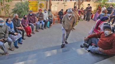 A queue in Ahmedabad as ‘precautionary’ doses for 60-plus began Monday. Around 9.68 lakh are believed to have received the shots on the first day. (Express photo by Nirmal Harindran)