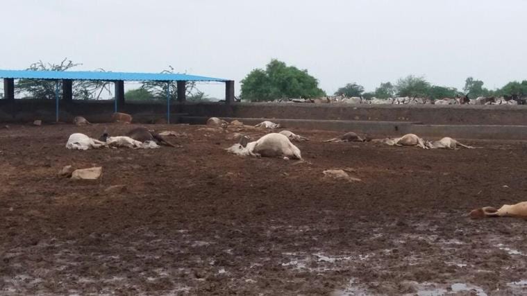 The incident took place at Bakna Vid cattle pound of Shri Jivdaya Mandal (SJM), popularly known as Rapar panjrapol and located some 7 km away from Rapar town late Saturday evening after a rainy day. Cattle-herders noticed some cows collapsing all of a sudden at around 7:30 pm and falling unconscious. “After our caretakers at Bakna Vid pound complained of animals falling unconscious, we rushed some veterinarians to the spot and started treatment of around 80 cows and cow calves which had been affected. Unfortunately, we could save around 30 only while 65 of them died,” said Rajendra Kothari, manager of SJM told The Indian Express on Tuesday.