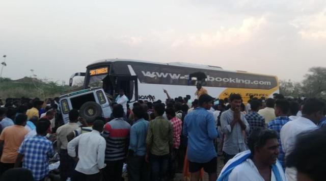 The luxury bus, proceeding from Hyderabad to Bengaluru, rammed into the jeep that swerved into the other side of the highway in order to avoid a two-wheeler. As the bus was moving at high speed, the impact of the collision was heavy which left 10 dead on the spot, police said.