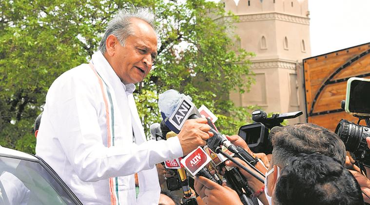 Gehlot outside a hotel in Jaipur, Wednesday. (Express photo)