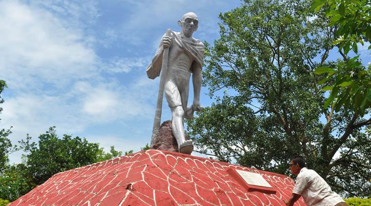 Statute of Mahatma Gandhi at Gandhi Mandap in Guwahati. (Source: Express photo by Dasarath Deka)