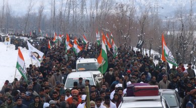 WELCOMED by thousands of people holding the Congress flag and shouting slogans of “Jodo, jodo Bharat jodo” and “Chhodo, chhodo nafrat chodo”, Rahul Gandhi could cover barely a kilometre of his Bharat Jodo Yatra after entering Kashmir Friday, before it was called off for the day, due to an alleged security breach.
