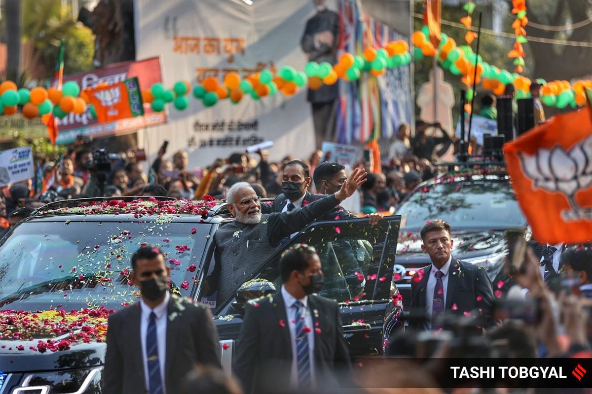 PM Narendra Modi at a roadshow in Delhi ahead of the BJP national executive meeting. (Express Photo by Tashi Tobgyal)