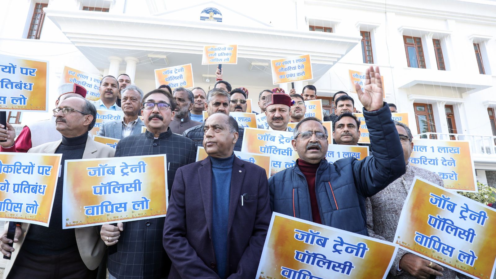 The BJP Legislature Party Tuesday staged a protest in the Himachal Pradesh Assembly complex against the state government’s Job Trainee Policy, calling it “anti-youth” and demanding its immediate withdrawal.