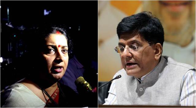 Smriti Irani has been removed as I&B minister while Piyush Goyal has been given the additional portfolio of Finance. (Express Photos)