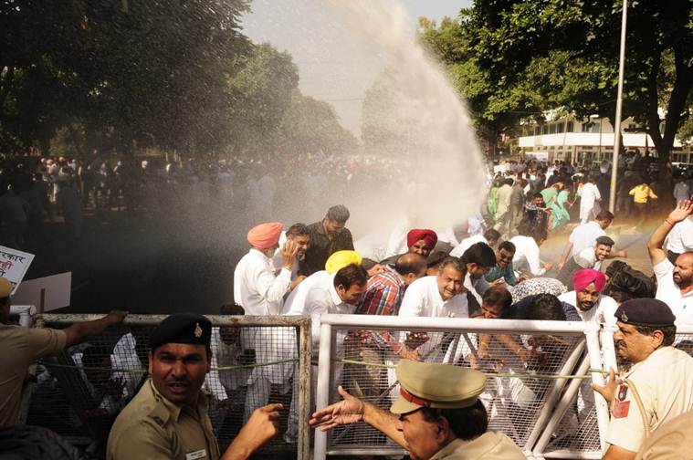 Ahead of the protest, police had barricaded the roads leading to the CBI office in Sector 30 and when protesters attempted to cross the barricades, water cannon were used by the police to disperse them.