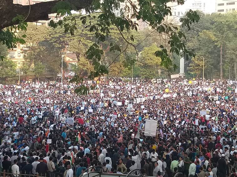 In Mumbai, thousands of protesters descended to August Kranti Maidan. (Express photo)