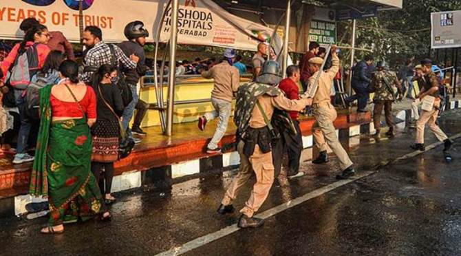 The area near the university has turned battleground with the police detaining those jumping the barriers. Some have even resorted to stone-pelting and the police are using tear gas to disperse the mob.
