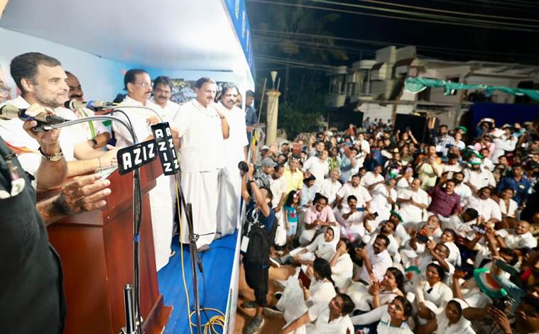 Congress leader Rahul Gandhi addressed a crowd at Kallambalam, Kerala, as part of his Bharat Jodo Yatra.