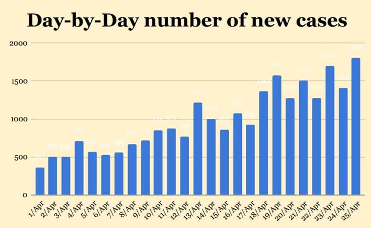Last week into the extended lockdown, the confirmed cases of coronavirus in India neared the 27,000-mark. As per the last update by the Health Ministry, the total number of cases climbed to 26,917, including 826 deaths. Maharashtra continues to be the worst-affected state, followed by Gujarat. Delhi saw a big jump in the number of cases, reporting 293 new cases on Sunday. Earlier today, Prime Minister Narendra Modi, in his monthly radio address 'Mann ki Baat', called the fight against coronavirus in India 'people-driven' and asked people to shun any complacency that they will not be infected by the virus. This was his second radio address since the initial lockdown was announced on March 25 to contain the transmission of the virus. In his last Mann ki Baat address on March 29, the Prime Minister had sought forgiveness for the inconvenience caused to people by the unprecedented lockdown measures. Meanwhile, the World Health Organization has warned that recovering from coronavirus might not protect people from reinfection as the death toll from the pandemic crossed 200,000 around the globe. The United States is the hardest-hit country by far in the pandemic, recording more than 51,500 deaths and over 890,000 detected infections. Follow Indian Express COVID-19 tracker for latest updates