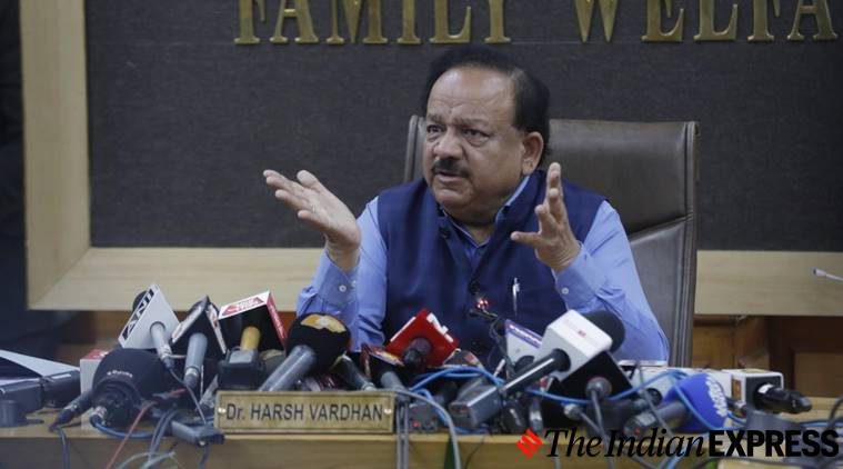 Union Health Minister Dr Harsh Vardhan addressing the press on the situation of coronavirus in India (Express photo/Amit Mehra)
