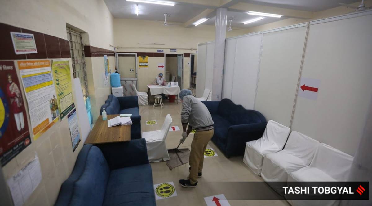 An insight into what would be a Covid vaccination center in New Delhi. This facility at the SDMC maternity home in Sriniwaspuri is the first Covid vaccination center set up in the capital New Delhi on Thursday. (Express photo by Tashi Tobgyal)