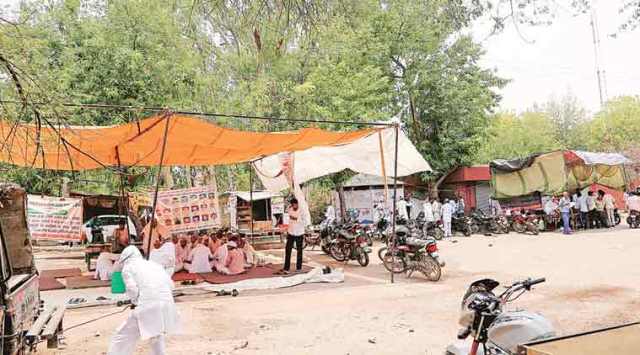 The Dalits pitched their tent here on February 9. Today is the 116th day of their protest. Banners of their demands and posters of victims of atrocities flutter in the hot June wind. The protesters include 120 men who converted to Buddhism on May 31 at New Delhi’s Ladakh Bhawan after a three-day march to the capital, where they handed over a memorandum of demands to Khattar’s nominee at Haryana Bhawan.