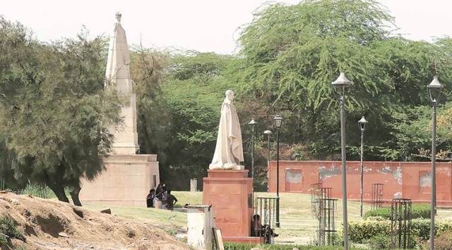 The marble plinth of the towering sandstone obelisk at Delhi’s Coronation Park is a scribble board of life, love and longing — names, hearts with arrows piercing through them, phone numbers, messages. And aspiration. “I want to become an Income Tax officer. I hope that happens soon,” reads one such message inscribed beneath the black plaque that announces that it was at this very spot that a British monarch was coronated the “King of India” over a century ago. Above the aspiring officer’s is another message written in black marker ink: “Aarti wants to become a good stenographer”. As reports come in from across the country of statues being vandalised or destroyed, at Coronation Park, the statues of British monarch King George V and his imperial notables, removed to this corner of the Capital from Lutyens Delhi many years after Independence, stand vanquished by time. A group of young men, all in their early 20s and wearing track suits and joggers, run across the length of the half-complete, dust-filled park, that is spread across 20 acres in north Delhi. It’s late afternoon and the sun is still bright. Gasping for air, one of them halts to grab a bottle of water. “He is my cousin,” says 23-year-old Alok, handing the runner a bottle. “He is preparing for the physical (test) for the job of a constable in the Uttar Pradesh Police. I am sure he will clear the test this time,” he says as he watches his cousin race towards the western flank of the park, before disappearing into a group of boys playing volleyball. “We live in Loni (Ghaziabad). it’s a few kilometres from here. We are preparing for government jobs and go to a coaching centre in nearby Mukherjee Nagar. We come here after our classes. He runs for the physical (test) with his friends, while I prepare for the SSC paper (Staff Selection Commission exam),” says Alok as he takes out from his bag a copy of Pratiyogita Darpan, a magazine for competitive exams, the latest issue of which has Prime Minister Narendra Modi on its cover. Like many others, Alok is unaware of the park’s historical significance. Unaware that on a cold, sunny December morning, 107 years ago, some 562 kings and princes of India had lined up to pay their allegiance to British monarch King George V and Queen Mary at the very spot where he is sitting. Unaware that the meandering road that he took from Kingsway Camp to reach the park, in a cramped battery-operated rickshaw, was sprinkled with oil so that the dust didn’t rise to the monarch’s face during the procession ahead of the historic Delhi Durbar in 1911, held to commemorate the coronation in Britain a few months earlier of George V and his queen. In his novel Twilight in Delhi, scholar Ahmed Ali had described the procession thus: “The procession passed, one long unending line of generals and governors, the Tommies and the native chiefs with their retinues and soldiery, like a slow unending line of ants. In the background were the guns booming, threatened the subdued people of Hindustan.” While the obelisk was built by the British to mark the Durbar, the statues — of King George V, along with that of his nobles, officers and viceroys — came here much later. According to some accounts, it was in 1968, nearly two decades after India gained Independence, that the statues were moved from Central Delhi and dumped in this park, then a desolate and marshy ground overlooking the Yamuna floodplain, making it a graveyard of British Raj relics. They stood that way for years, on red sandstone pedestals surrounded by tall grass, creepers and trees, confined within a 5-ft-tall wall, topped with barbed wires, that ran along the perimeter of the park. In 2011, when the government decided to mark the centenary of the 1911 Durbar, the statues got a new lease of life. They were taken out of their confinement and placed around the obelisk pillar: three to its right and two to its left. If the history of the park is a chapter he missed, Alok sees his present through the prism of his immediate concern — the exam he hopes to crack. “Dost, itihaas waale section mein ye nahin poochcha jaayega ki yahan kya hua tha. Ye bhale poochch lein ki Durbar kis saal mein laga tha (Friend, in the history section of the SSC exam, they are not going to ask what happened in this park; they may ask though which year was the Delhi Durbar held). Similarly, they may ask who won in Tripura; not whose statue was pulled down. Bas, pehle naukri toh lag jaaye, phir ye sab bhi jaan lenge (Anyway, let me get a job, then I’ll learn all this),” he says. It was the pulling down of the Lenin statue in Tripura after the BJP win that set off attacks on statues across the country. Some yards away, standing beneath an imposing statue of white marble, 28-year-old Anil Tomar is full of despair. A resident of Sonipat in Haryana, Anil says he fell on hard times after he lost his job at a factory six months ago. “I have mouths to feed. Someone I knew helped me get this job,” says Anil, one of 28 security guards hired by a private contractor for the park. He is not happy with the upkeep of the park, he says. “The contractor who was to make this theatre (an amphitheatre) has left. The paths have not been paved. The plants have not been planted. The statues are broken,” he adds, pointing to the statue above him, its face defaced. “He was a British king, wasn’t he? Look at his clothes,” says Anil, pointing to the statue’s long ermine robes in marble, the Imperial Crown of India atop his head and the Royal Victoria Chain dropping from the edge of his shoulders. “Raja hi tha wo (He was indeed the king),” he now says with confidence. The statue is of King George V. Sixty feet tall, flanked by trees of babul and keekar, the statue once occupied the power centre of the British Raj — the Kingsway, now Rajpath. It was housed within a 73-ft-tall dome-shaped canopy of red sandstone, which Edward Lutyen had designed 