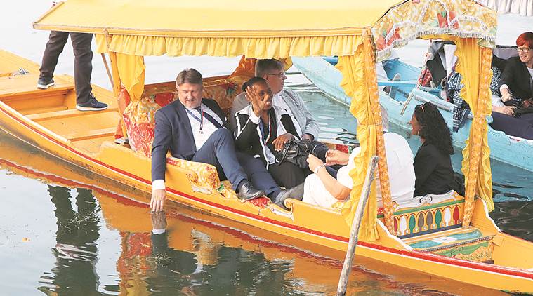 The delegation of European Union (EU) MPs visited Dal lake in Srinagar today. (Express Photo: Shuaib Masoodi)