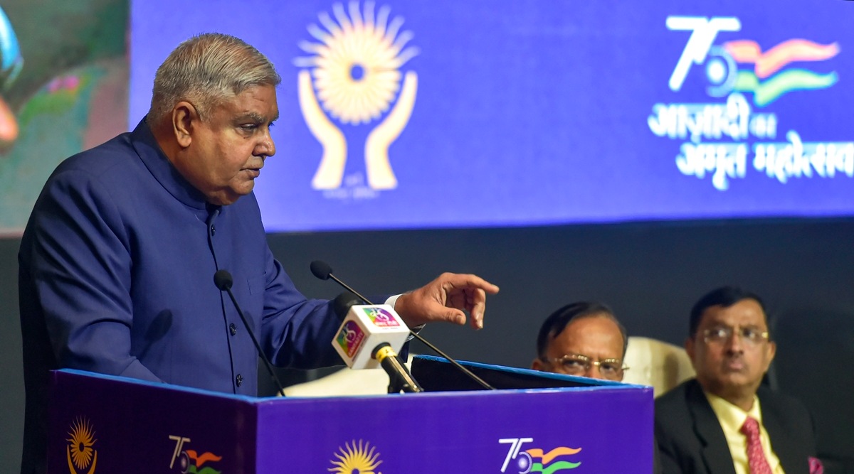 Vice President Jagdeep Dhankhar addresses at the inaugural session of the National Human Rights Commission's (NHRC) 29th Foundation Day celebrations, in New Delhi, Wednesday, Oct. 12, 2022. (PTI/File)