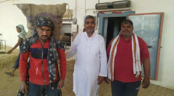Doongar Singh Chaudhary (centre) at his cold store in Khandauli near Agra with potato farmer Jeevan Singh (right). Photo: Harish Damodaran