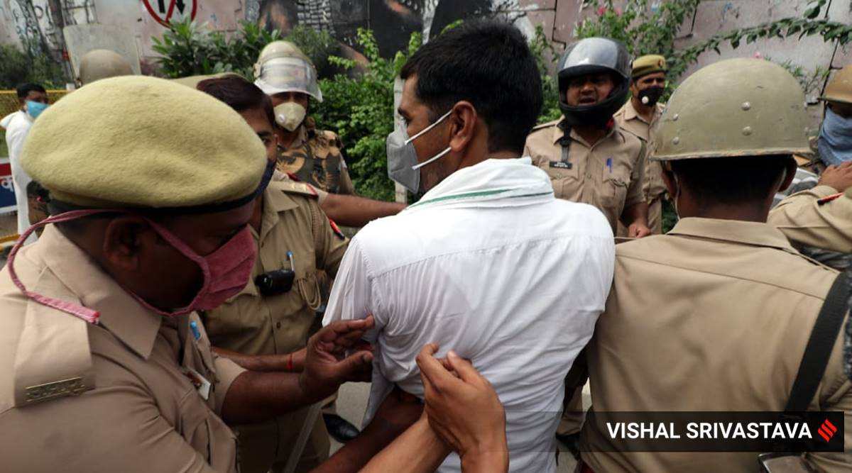 UP Police detained farmers who were protesting against new agriculture bills in Lucknow on friday.Express photo by Vishal Srivastav