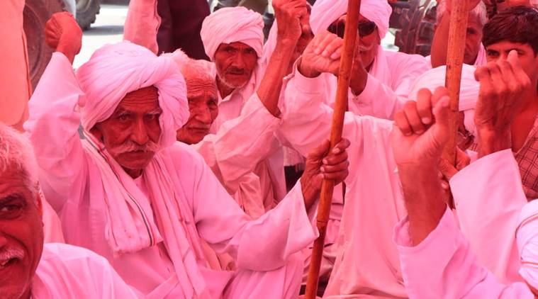 A farmers' union affiliated to the Left parties stage a protest in Hyderabad on Friday. (Express photo/Rahul Pisharody)