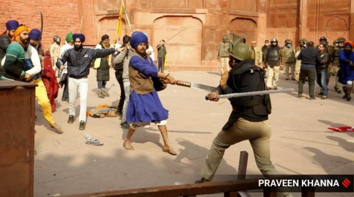 Despite farmers breaching the barricades at Singhu, the largest protest site, the march was initially peaceful, with policemen watching from the sidelines and the youth forming a chain to prevent participants from moving ahead on their own or picking up sticks from the roadside. But some in the crowd decided to take a different direction.