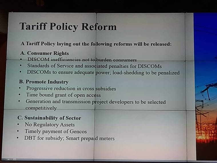 The government will release a tariff policy with reforms, including consumer rights, promotion of industry and sustainability of sector.
