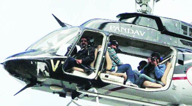 Uddhav Thackarey takes pictures from a chopper at Dive ghat. (File)