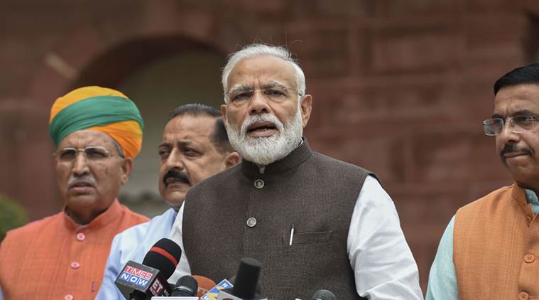 PM Narendra Modi goes to address the media ahead of 17th Lok Sabha session. (Express Photo by Renuka Puri)